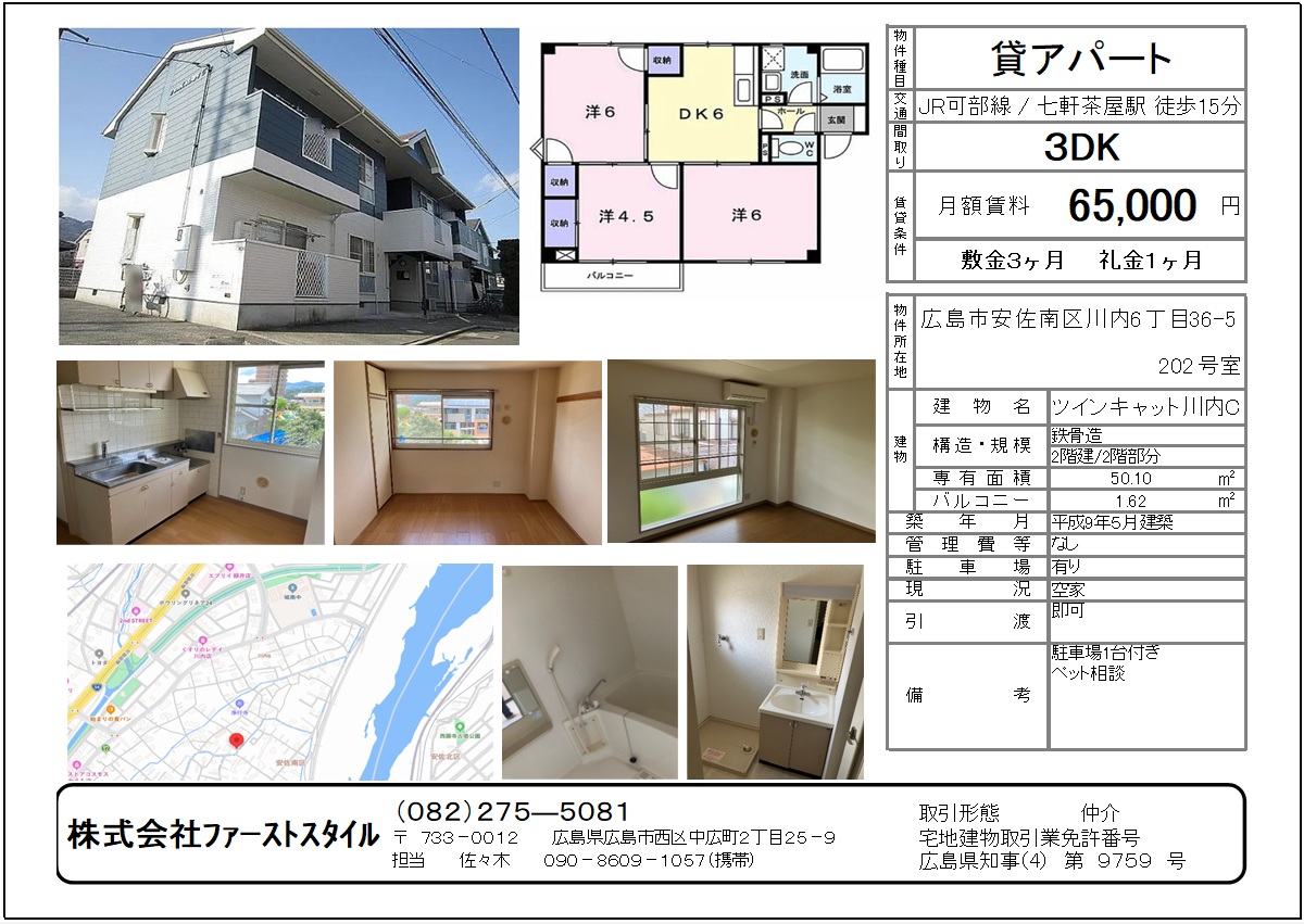 広島市安佐南区川内6丁目 ツインキャット川内C202